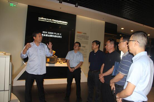 天瑞儀器總經理應剛帶領來訪專家參觀天瑞儀器多媒體展示廳
