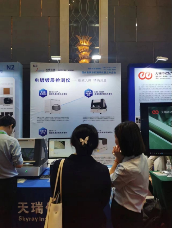 通過現(xiàn)場儀器的演示與技術人員的精彩講解,天瑞儀器向現(xiàn)場觀眾呈現(xiàn)了精彩的產(chǎn)品及技術分享。此次展會,展出產(chǎn)品包括EDX 600Pro能量色散X熒光光譜儀、全自動微區(qū)膜厚測試EDX2000A能量色散X熒光光譜儀、雙攝廣角大平臺EDX-T能量色散X熒光光譜儀、多導毛細聚焦EDX-VX射線熒光鍍層測厚儀等。
