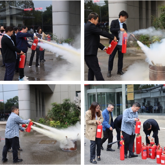 員工們手持滅火器參加現(xiàn)場滅火體驗(yàn)