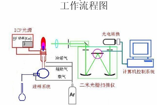 溶液進入等離子體光源中受激發,釋放出光子,形成該元素的特性譜線,譜線的強度和蒸汽中原子的濃度成正比,進行定量測定。