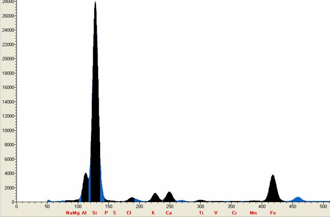 以下使用EDX 3600B型對鐵礦國標樣GSR-5實際測試的所得的譜圖,工作曲線等相關數據: