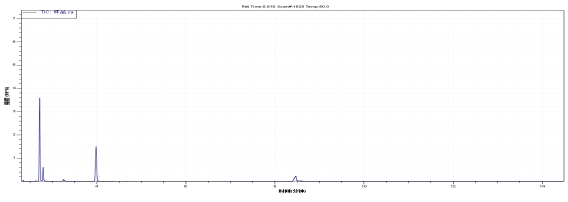 將樣品用乙酸乙酯稀釋合適倍數后,準確吸取1μl溶液進行測試,譜圖和檢測結果如下