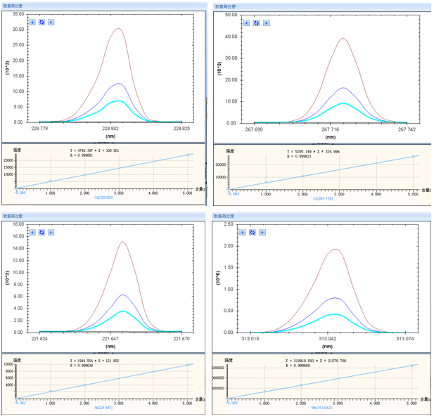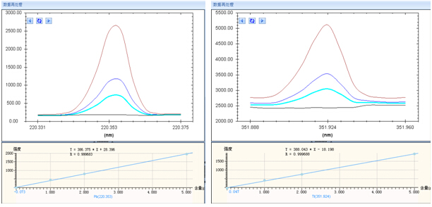 在 ICP-AES正常運(yùn)行后,將樣品溶液通過進(jìn)樣系統(tǒng)引入到電感耦合等離子體中,分析波長測定各元素的光譜強(qiáng)度。