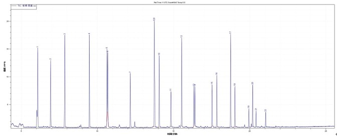 柱箱程序升溫條件:50℃(1min)10℃/min 280℃(5min)
