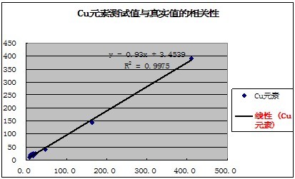 有關元素的測試值與真實值的相關性如下表示: