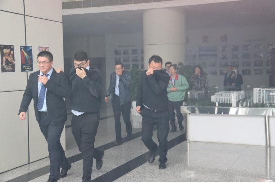 本次演練由公司總經理應剛擔任總指揮。演練共設置了警械疏散組、通訊聯絡組、搶修搶險組、物資供應組、醫療救援組五個組。下午2點,各小組準備完畢后,演練正式開始。根據演練預案,公司四樓倉庫發生了火災,剎那間煙霧彌漫。火災報警系統的警報聲驟然響起,大樓內全體員工聽聞報警聲后迅速切斷電源,在各部門負責人的組織下,沿著大樓樓梯向樓下跑去,迅速逃離火場。整個過程井然有序,五分鐘的時間,大樓內工作人員全部逃離火災現場,接著參加在公司門口空地舉行的滅火演練。